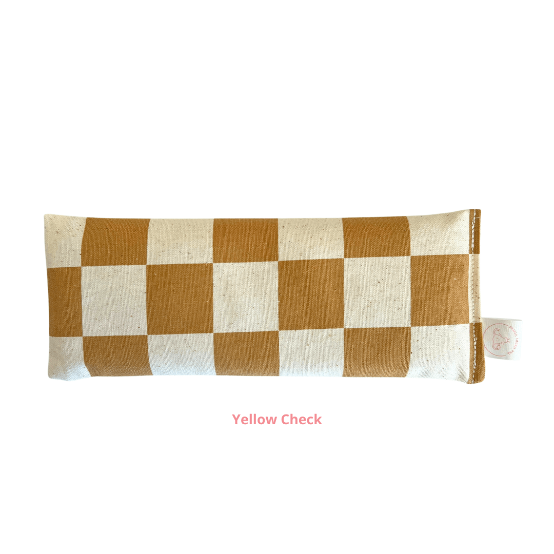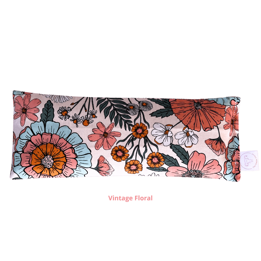I am a little pillow made to sit perfectly over your eyes. I am filled with locally sourced wheat kernels for the right amount of pressure and organic lavender and chamomile flowers to promote relaxation and calm.